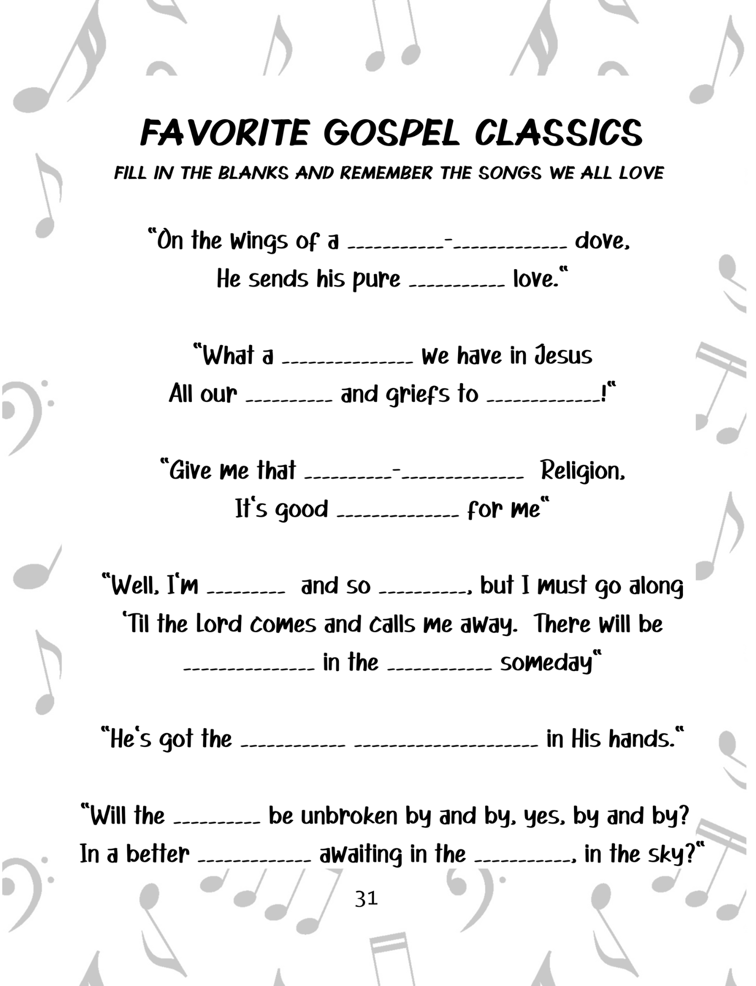 Each page is large-print, clear, and easy to complete—perfect for quiet evenings, church study groups, or even hospital and senior ministries.