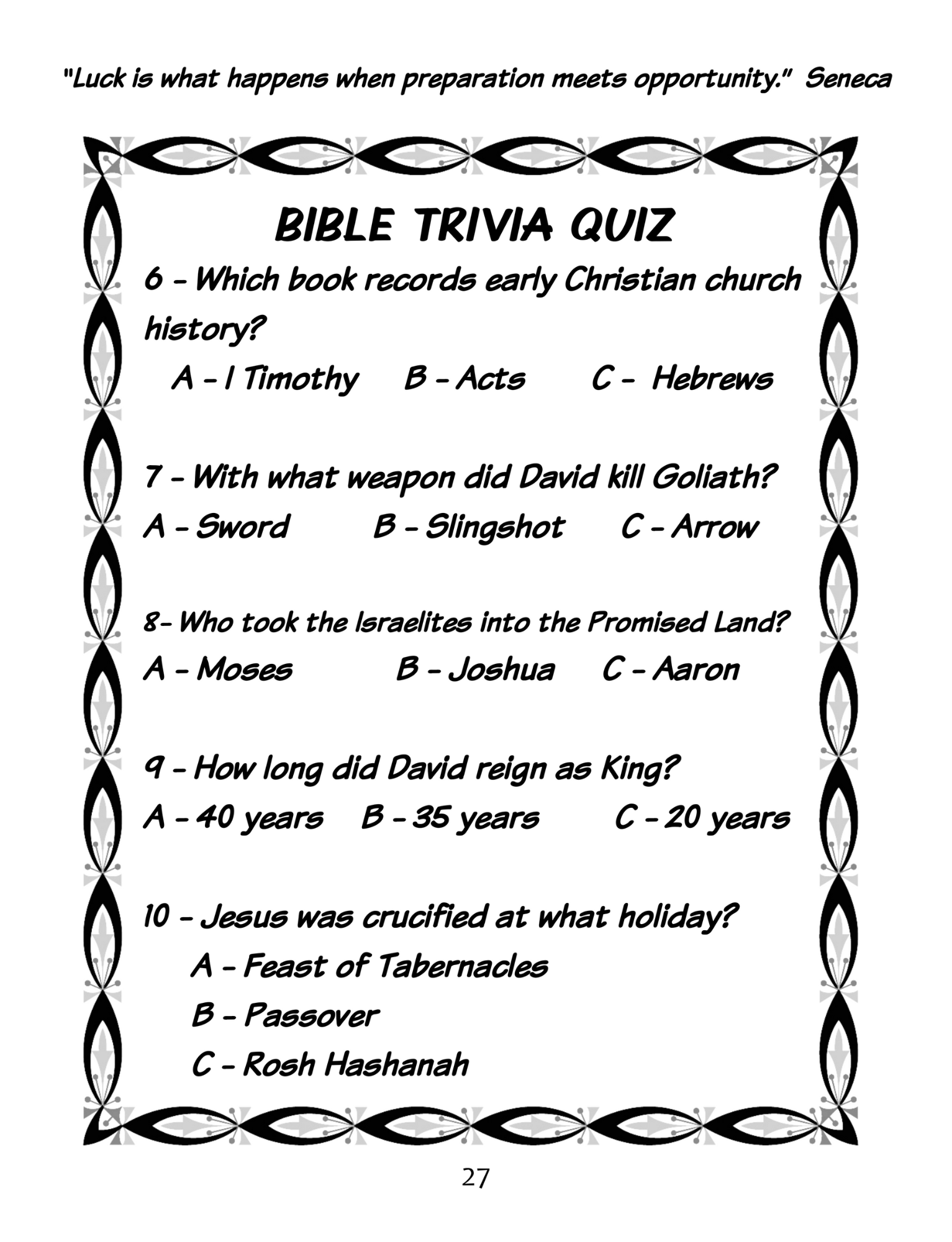 Bible Trivia – Test your knowledge with multiple-choice questions that span God’s plan of redemption.